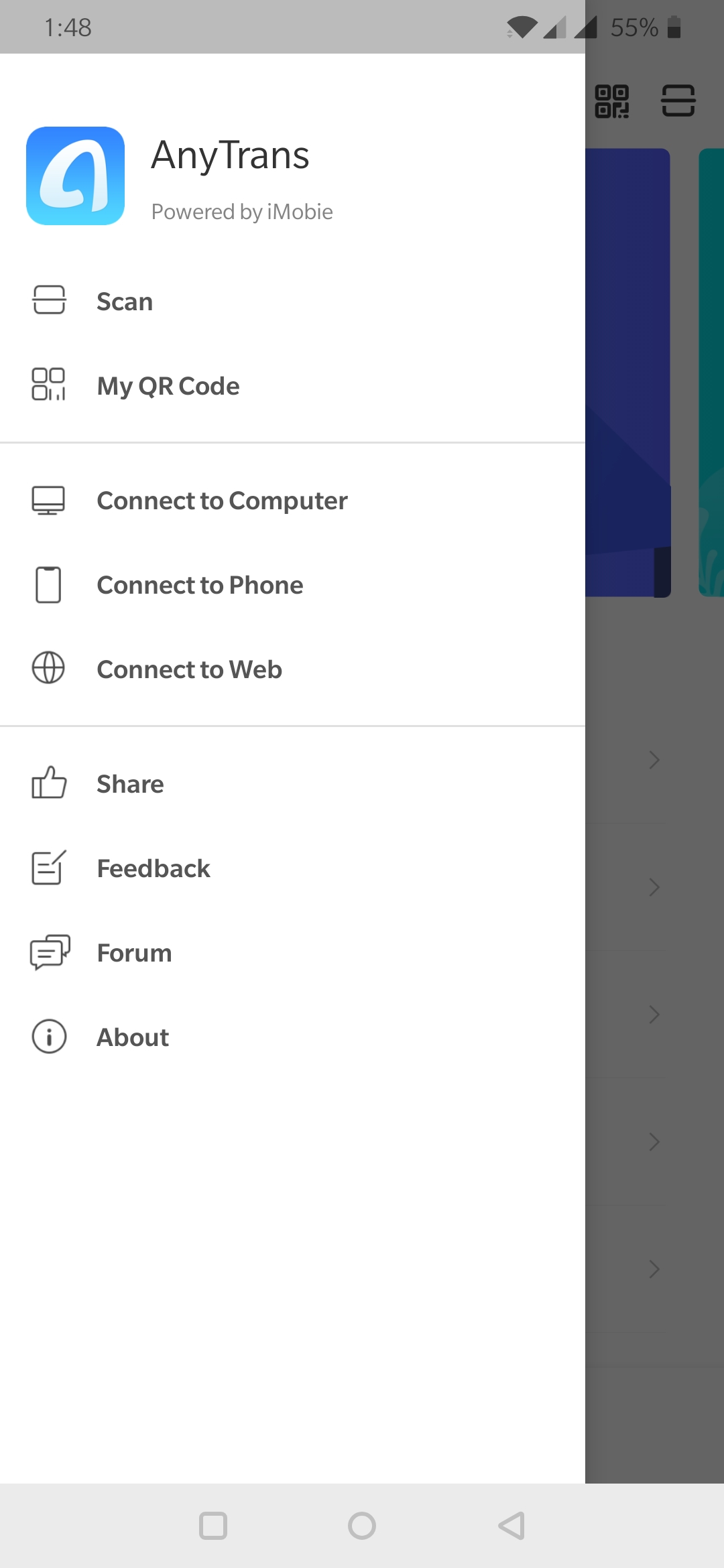 - If you choose to go wirelessly, open AnyTrans on your PC and scan the QR code from your Android device. It will detect your device and connect instantly.