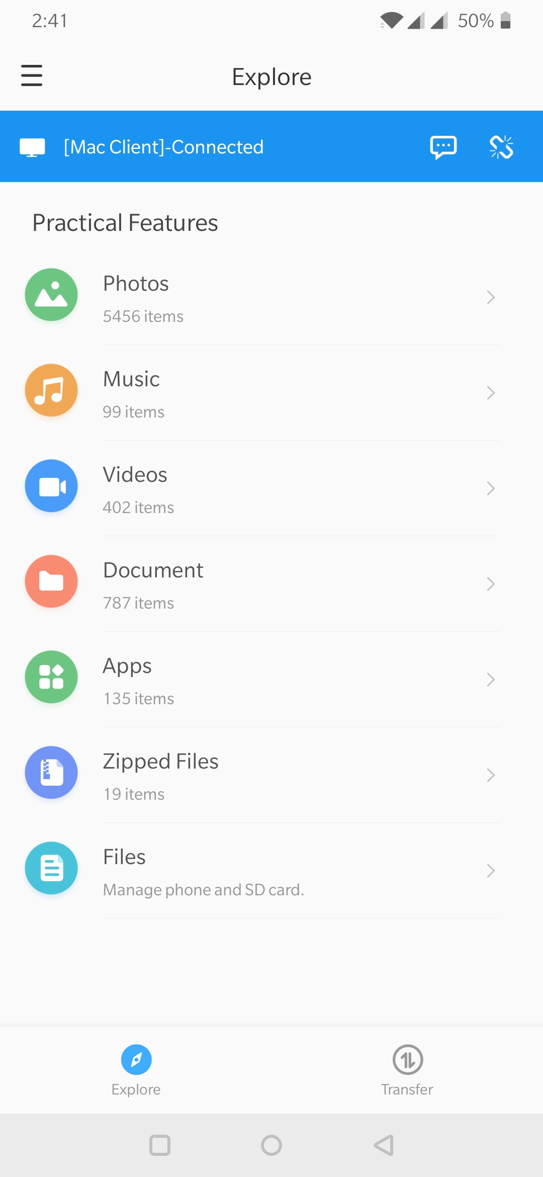 One-click file management – AnyTrans let you manage your data by connecting via USB cable or wirelessly. AnyTrans organizes music, photos, videos, documents, and more files into categories to make it easy to find what you are looking for. AnyTrans app works with the desktop version so you can reorganize, rename, and delete files on your Android device.