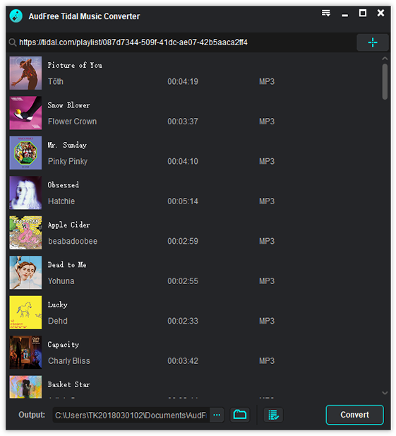2) Select or Add the Music – You need to copy or select the single track or playlist you’re listening to or you want to convert. You can copy and paste the Tidal playlist link to the search box of AudFree or just click the ‘+’ button to load Tidal music.