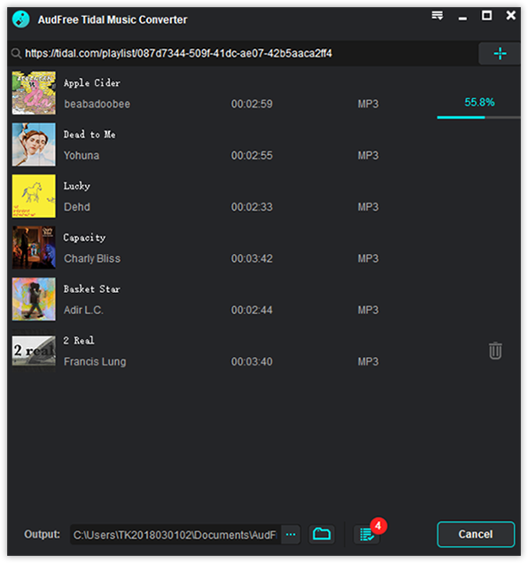 Audfree Tidal runs at 5X batch converting speed and with that, you can not only download Tidal songs for offline playback but also convert Tidal to MP3, FLAC, WAV, AAC, M4A, and M4B without losing the original audio quality. The tidal downloader also allows you to personalize output audio parameters, like bit rate, sample rate, audio channel, codec, etc.