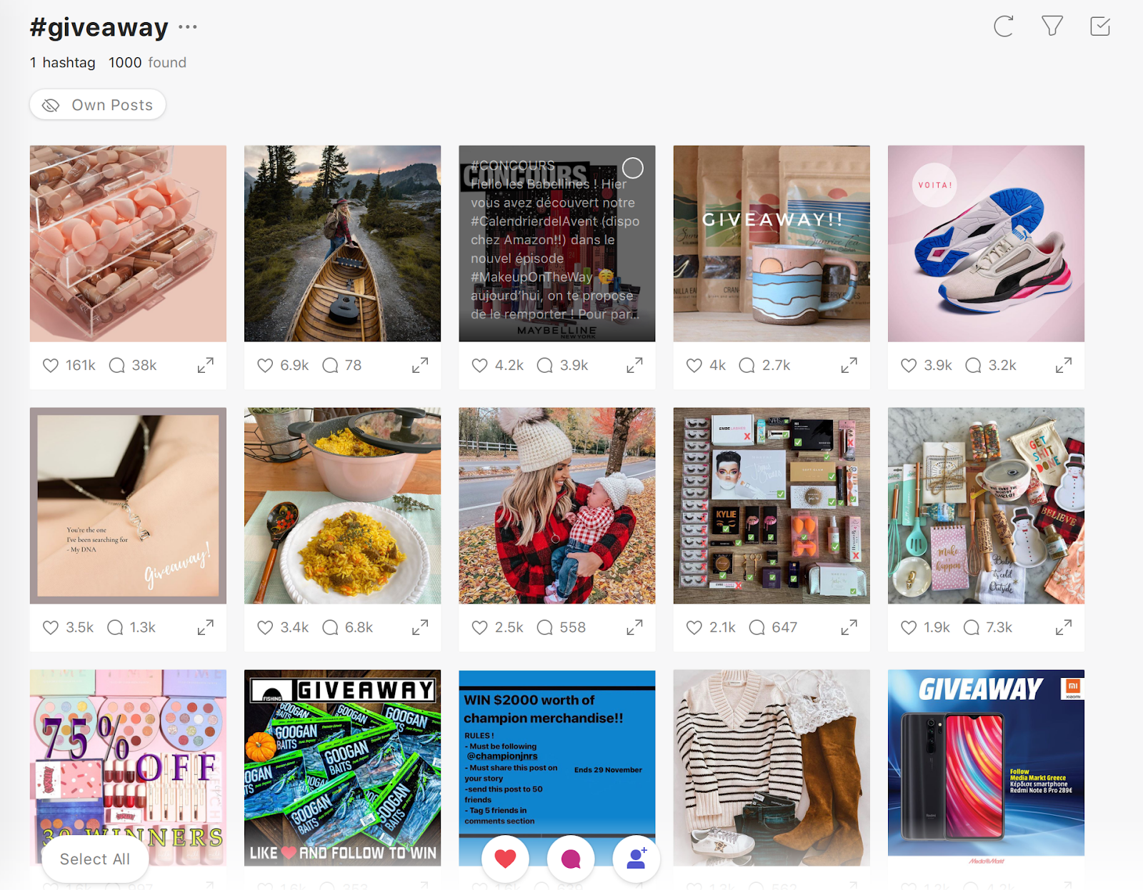 With this feature, you can search for your audience and competitors by hashtags, location, and users. Just put one or several relevant hashtags in a search field and get the results. To attract the attention of the users, you can like, comment, and follow these people in-bulk.