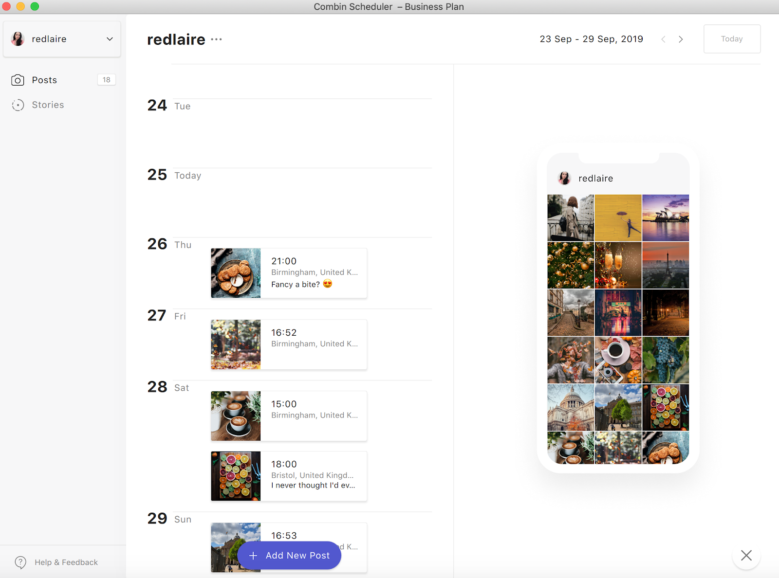 Instagram remains a visual social network, so this is vital how your grid looks. With Combin Scheduler, you can create and style your Instagram grid within an in-app calendar.