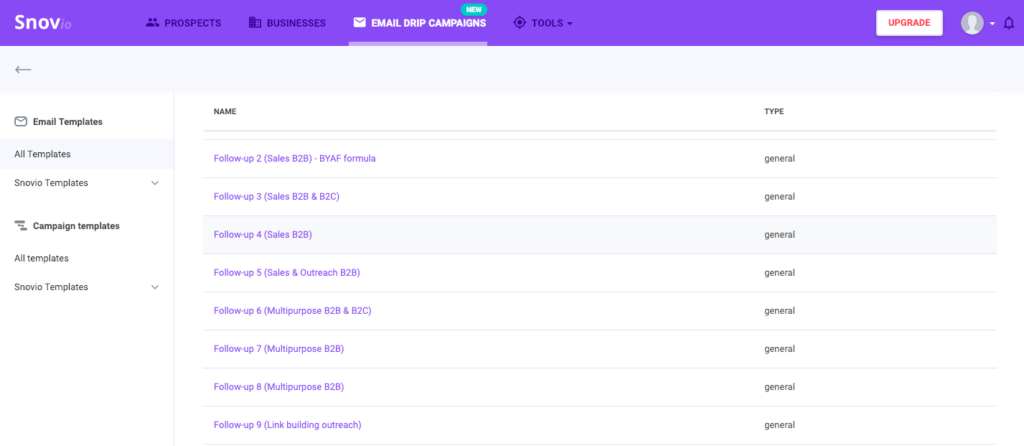 Sending emails, especially business emails, is time-consuming as you have to send them to multiple contacts and multiple groups together. With the Snov.io Email Drip Campaigns tool, the task becomes easier. You can create personalized emails or use the pre-composed templates for the purpose you need (the team gives access to more than 30 templates). The sending process is completely automated which gives you control over the workflow and saves you time.