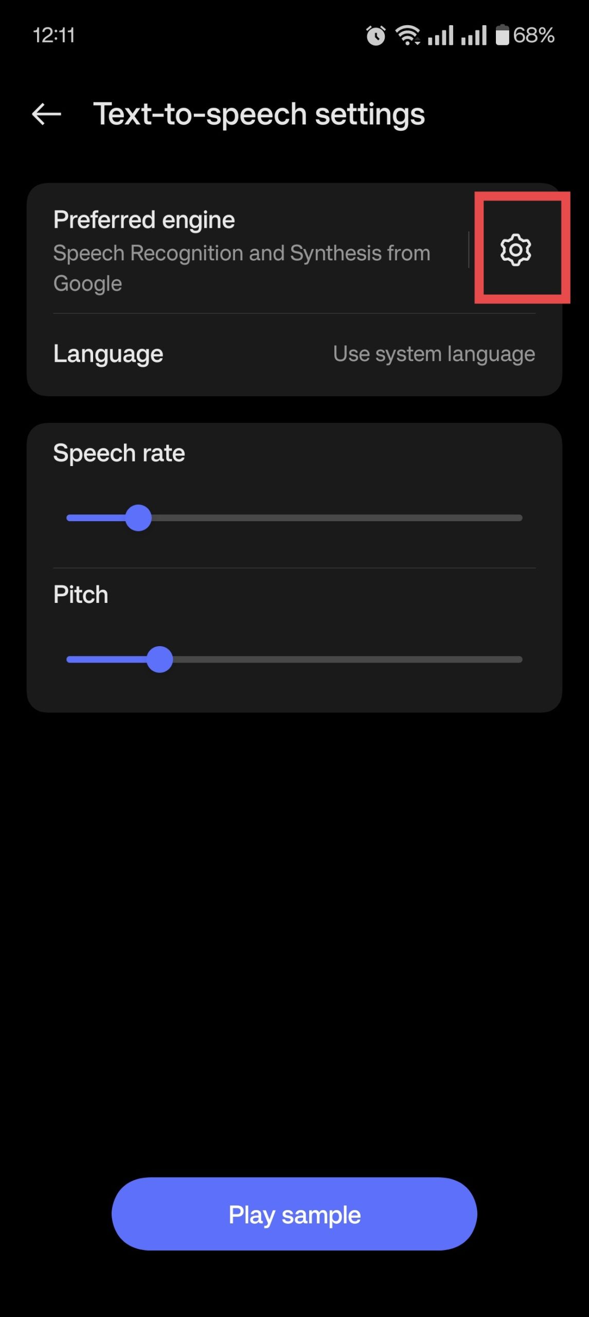 - Navigate to Accessibility > Vision tab > Text-to-speech settings.