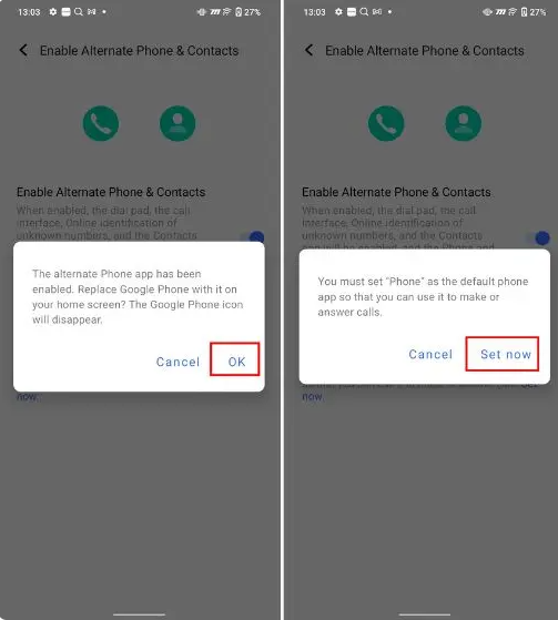 - Enable the toggle on this page and tap on OK, followed by Set now.