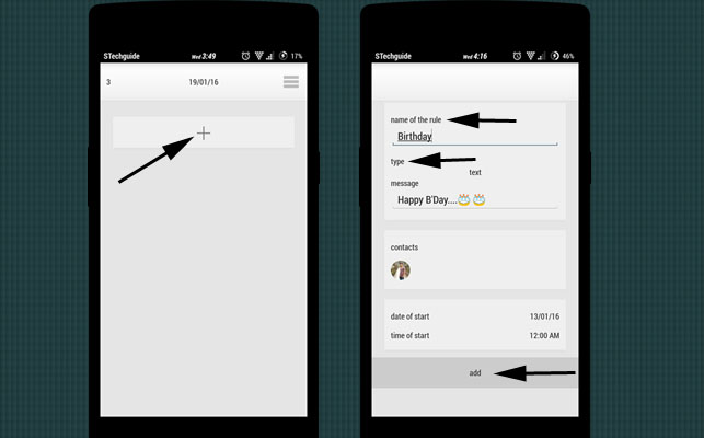 - Now enter anything in the ‘name of rule’. Now choose your message type image or text and enter your message or select a picture to send.