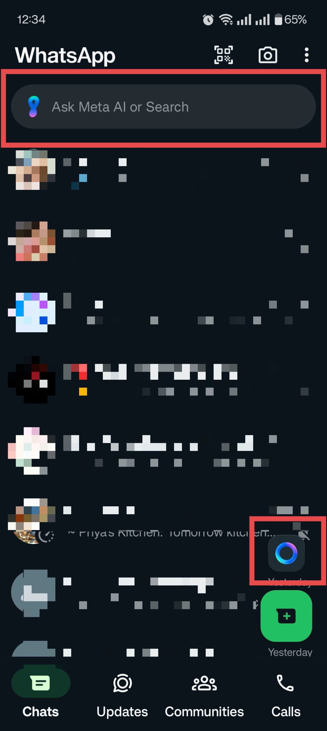 - Open WhatsApp and tap the blue Meta AI icon (at the bottom-right corner ) or tap the search field at the top of your chats list.
