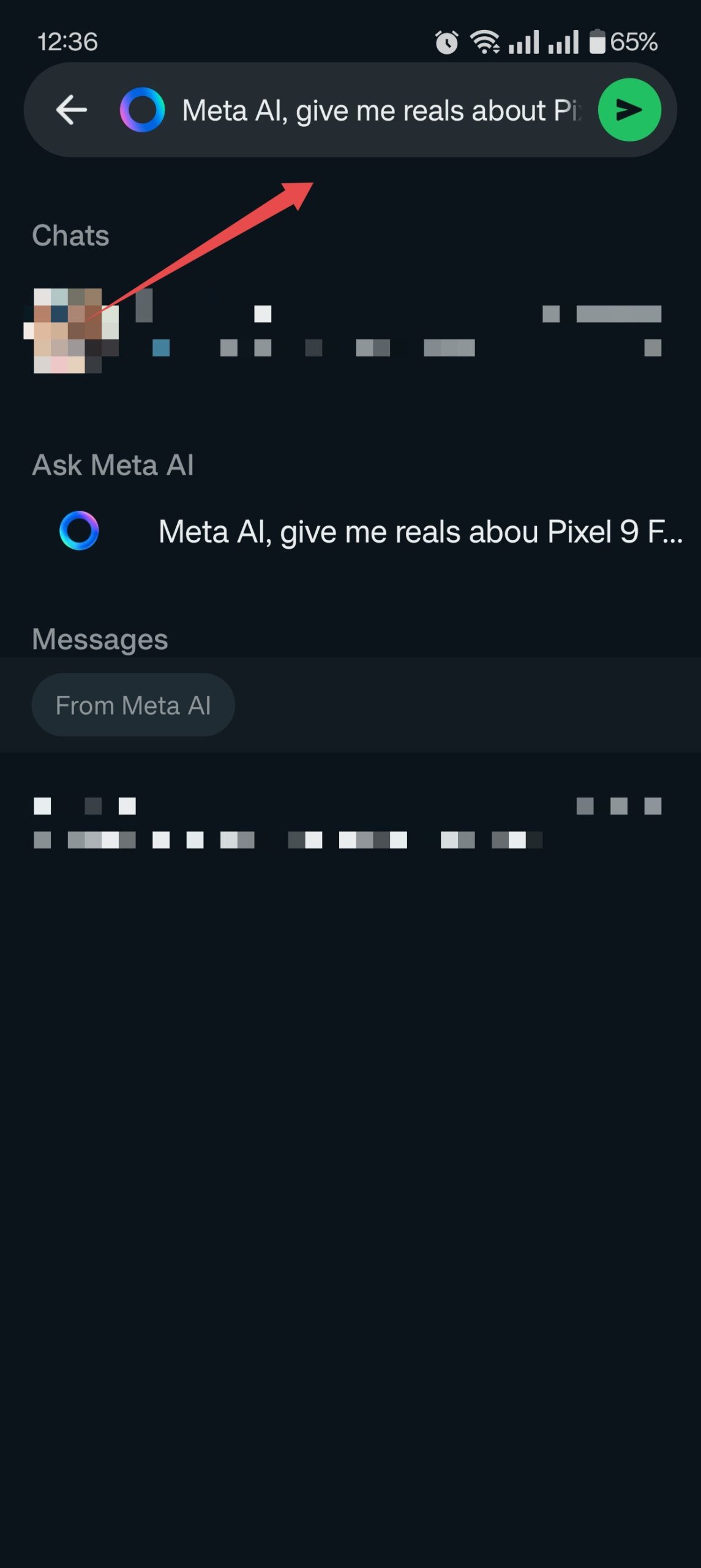 - Type your queries in a search box like Hey Meta, give me reels about <your topic>. For example, Meta AI, give me reels about Pixel 9 Fold and tap on Enter.
