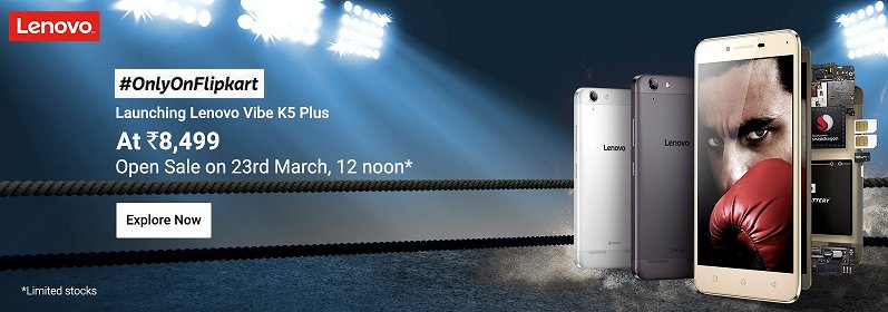 Lenovo Vibe K5 Plus launched in India at Rs 8,499. The Lenovo Vibe K5 Plus first announced at Mobile World Congress (MWC) 2016. The phone will be available exclusively on Flipkart with the open sale starting on Wednesday, March 23rd at 12:00 Pm. The smartphone is not an upgrade of K4 Note but it is marked as the successor of the Lenovo A6000 and Lenovo A6000 Plus. Check out Lenovo vibe k5 Plus specifications.