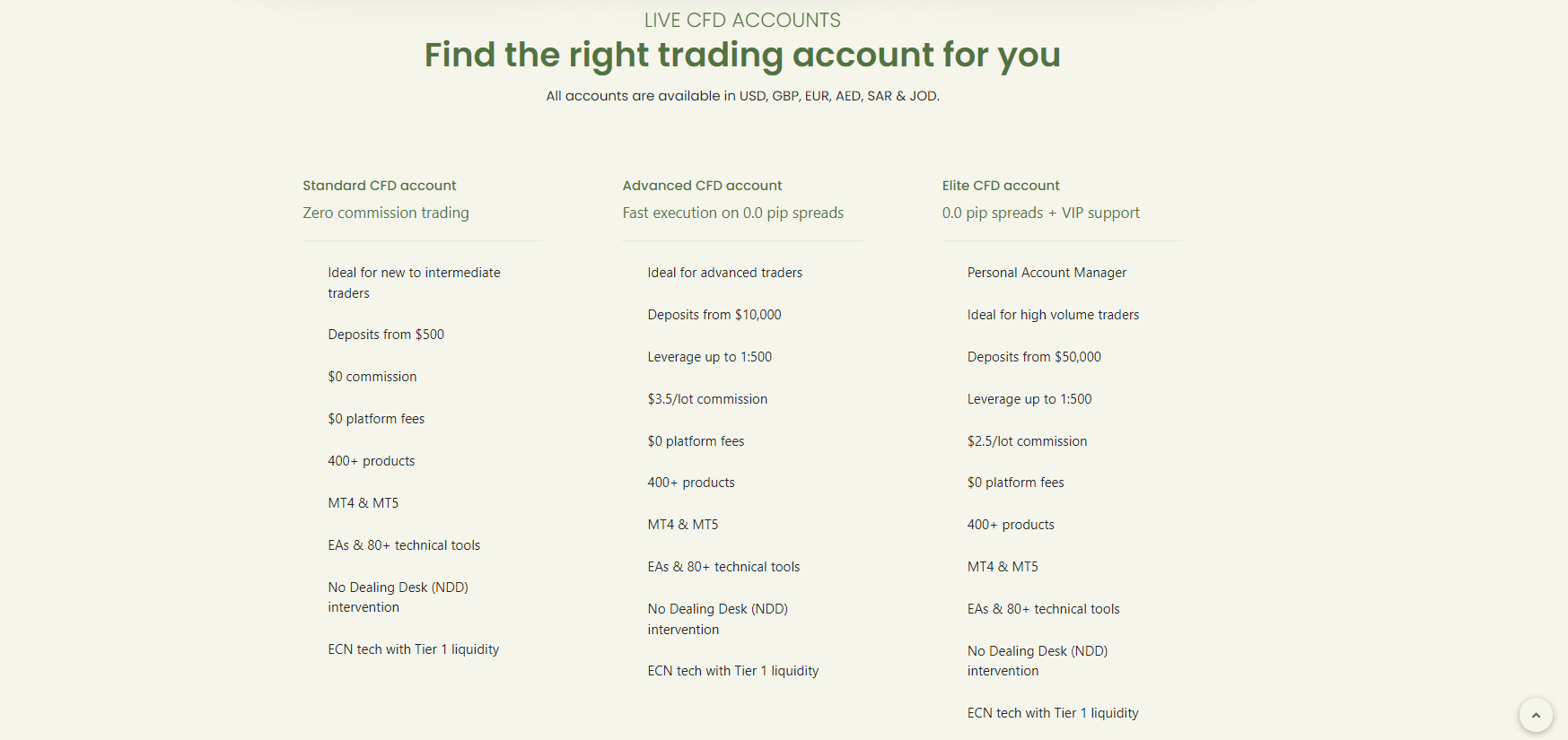 The Advanced CFD account is designed to meet the needs of experienced traders looking for enhanced trading capabilities. With a minimum deposit requirement of $10,000, this account offers increased leverage of up to 1:500, providing traders with greater trading power. The Advanced CFD account features fast execution on 0.0 pip spreads, enabling traders to take advantage of tight pricing and capitalize on market opportunities. The $3.5/lot commission ensures a straightforward and transparent fee structure, allowing traders to gauge their trading costs accurately. Similar to the Standard CFD account, the Advanced CFD account offers access to a wide range of products, popular trading platforms, and advanced tools for in-depth market analysis. With the absence of NDD intervention and the utilization of ECN technology powered by Tier 1 liquidity, this account ensures optimal trading conditions for advanced traders.