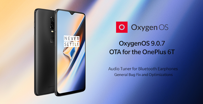 Latest OxygenOS 9.0.7 for OnePlus 6T starts rolling out. The OxygenOS 9.0.7 update for OnePlus 6T improved Bluetooth and WIFI stability for better connectivity, fixed display issues for lock screen wallpaper, Improved camera performance for slow motion and fixes some bugs. Download OxygenOS 9.0.7 for OnePlus 6T from below.