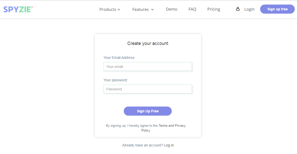 The first thing is to create an account with Spyzie. You can do this through the official website.