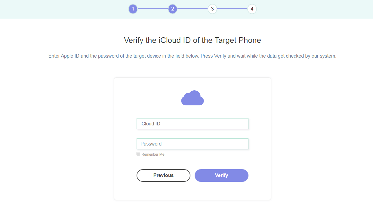 After making the payment, you will receive the setup instruction with the registration link. Click on the link to go to the activation page. Here, you need to provide the iCloud username and password of your target iPhone. Wait for a few minutes to verify the credentials.