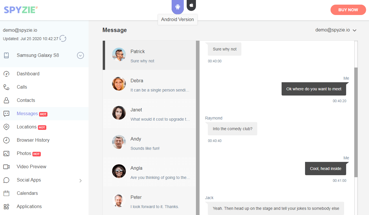 With Spyzie, you can see everything your target does on their social media handles. If the app is on the device, you’ll be able to see it remotely on your dashboard.
