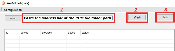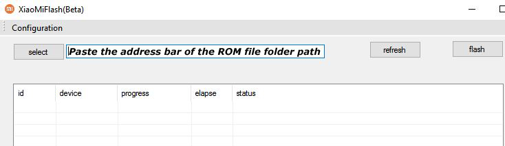 6) Now open MI Flash Tool and Paste the address bar of the ROM file folder path copied from above.