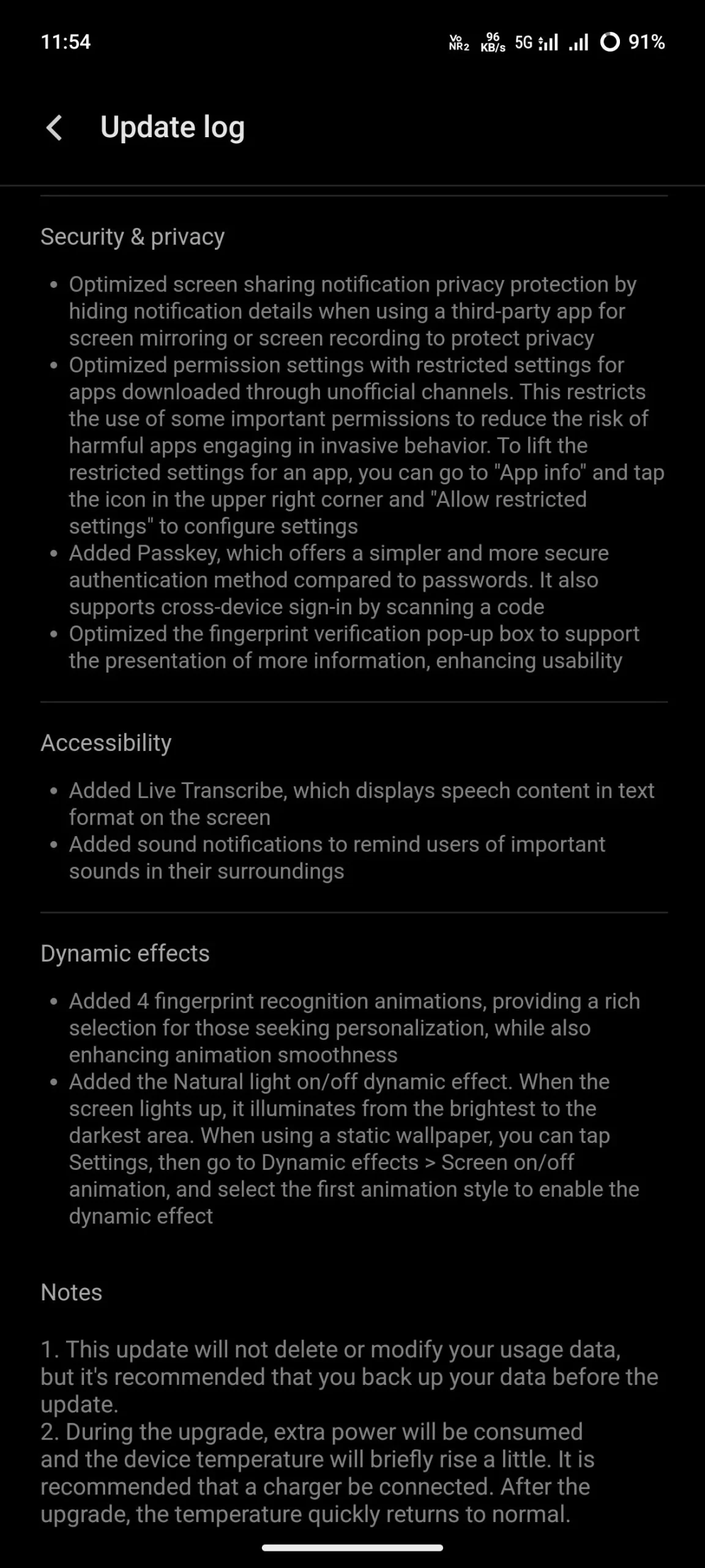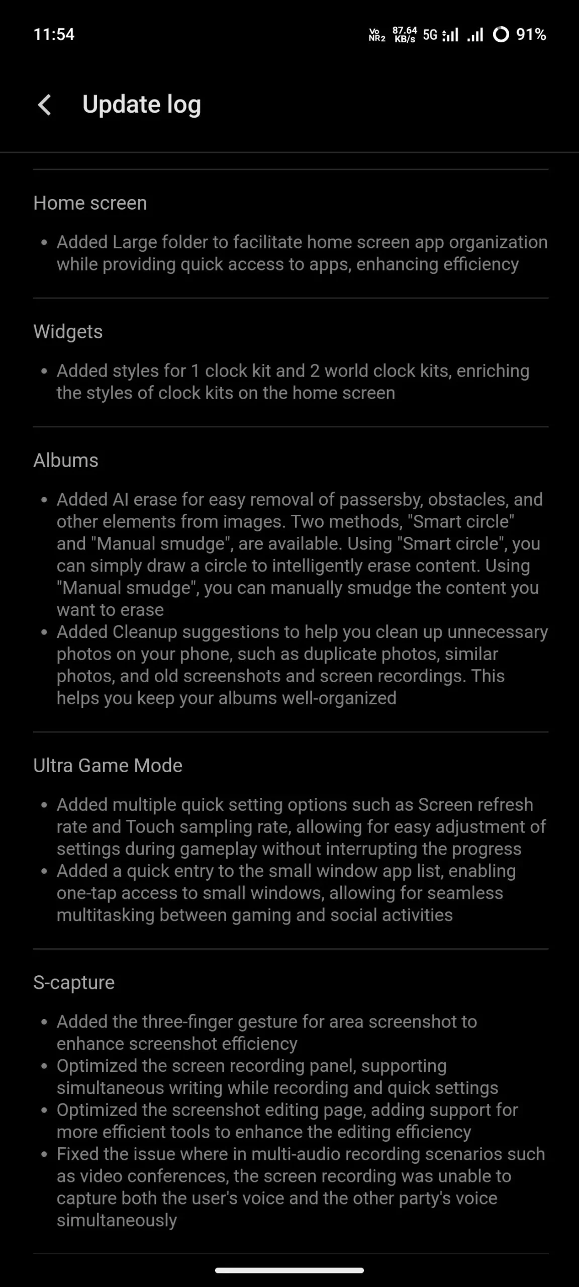 Photo editing now includes AI-powered erasing tools, and Ultra Game Mode adds quick settings for gaming. Enhanced multitasking gestures, improved screen capture, and better privacy protections are also featured. Additionally, Passkey offers a more secure login method, and new fingerprint animations and accessibility tools improve personalization and usability.