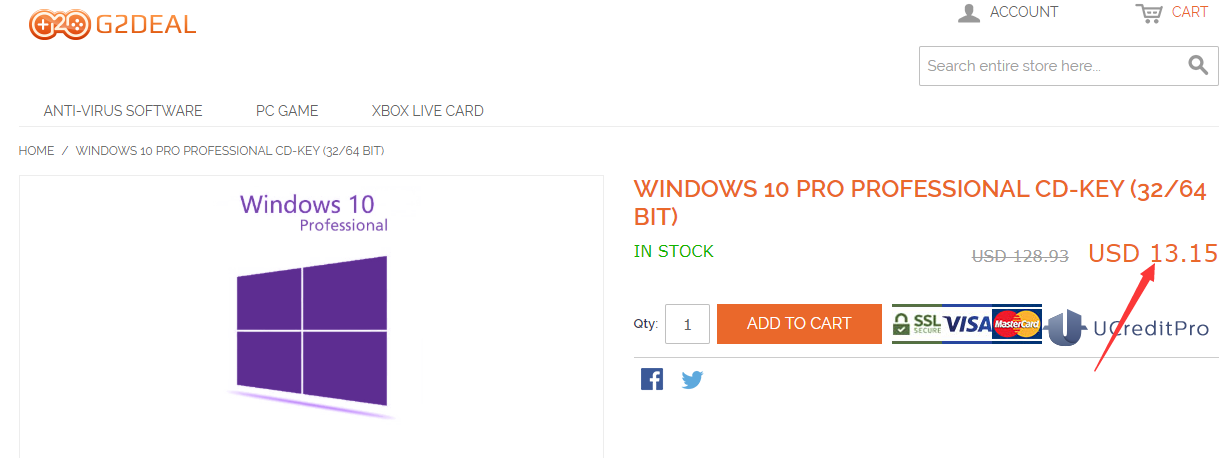 g2deal.com offers cheap software and games licenses. Most popular items include Windows operating system licenses, Office, and popular games. Currently there are many attractive offers on the page. One of them is Windows 10 Pro for only 10USD, which is a significant difference from the original price of 13.15 USD.
