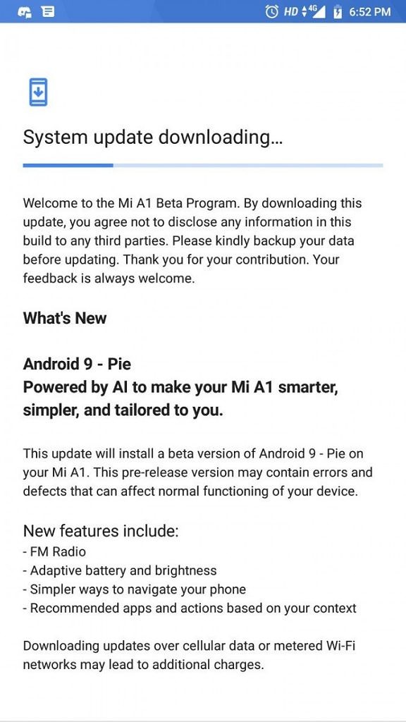 Download Xiaomi Mi A1 Android 9.0 Pie Beta Update